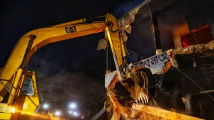 খুলনায় বুলডোজার দিয়ে গুঁড়িয়ে দেওয়া হচ্ছে শেখ বাড়ি। বুধবার (৫ ফেব্রুয়ারি) রাত সোয়া ৯টার দিকে মহানগরীর শেরেবাংলা রোডে অবস্থিত শেখ হাসিনার চাচাতো ভাইদের বাড়ির সামনে বিক্ষুব্ধ ছাত্র-জনতা অবস্থান নিয়ে ভাঙচুর করেন।