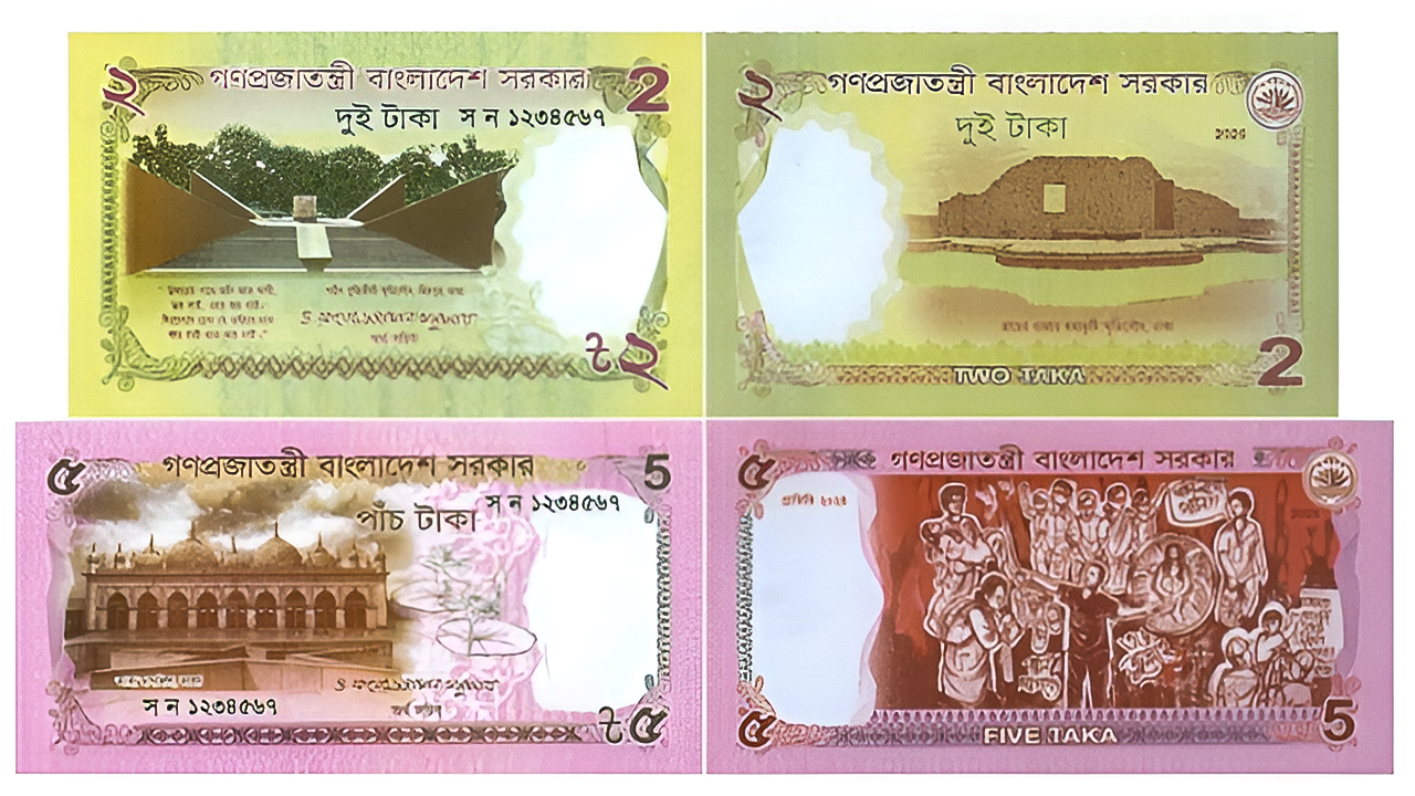 নতুন ডিজাইনের ছয়টি ব্যাংক ও কারেন্সি নোটের ছবি প্রকাশ করেছে বাংলাদেশ ব্যাংক। প্রকাশিত নোটগুলোর মধ্যে রয়েছে—৫০০, ২০০, ১০০, ১০ টাকা মূল্যমানের ব্যাংক নোট এবং ৫ ও ২ টাকা মূল্যমানের কারেন্সি নোট। এসব নোটে দেশের ইতিহাস, ঐতিহ্য, প্রাকৃতিক সৌন্দর্য ও সাংস্কৃতিক বৈচিত্র্য বিশেষভাবে তুলে ধরা হয়েছে।